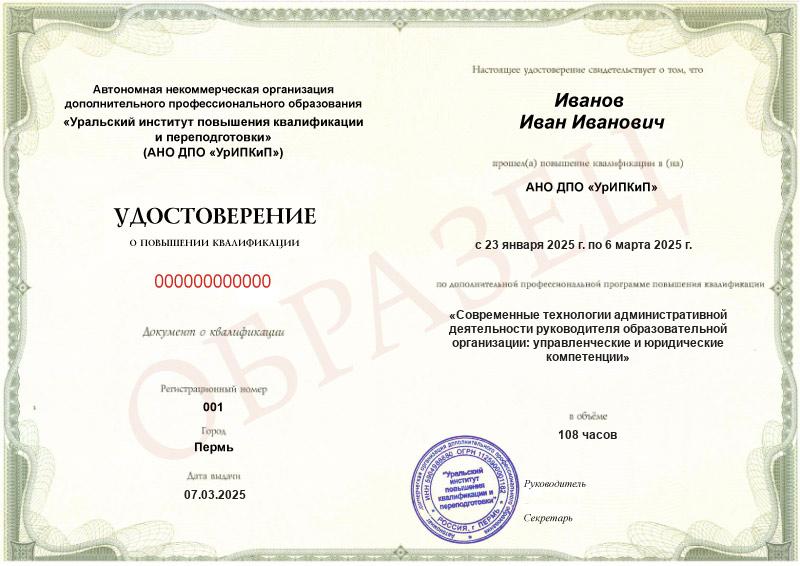 Заполненные образцы выдаваемых документов есть в описании учебных курсов и на странице «Лицензия. Документы», а также на главной странице официального сайта АНО ДПО «УрИПКиП».