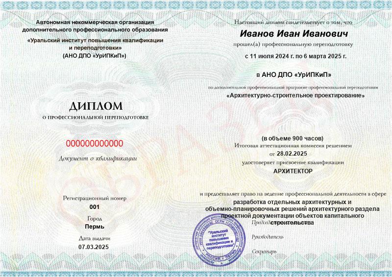 Да, дипломы и удостоверения оформляются в соответствии с действующим законодательством РФ. Документы печатаются на специальных бланках, заверяются печатью АНО ДПО «УрИПКиП».