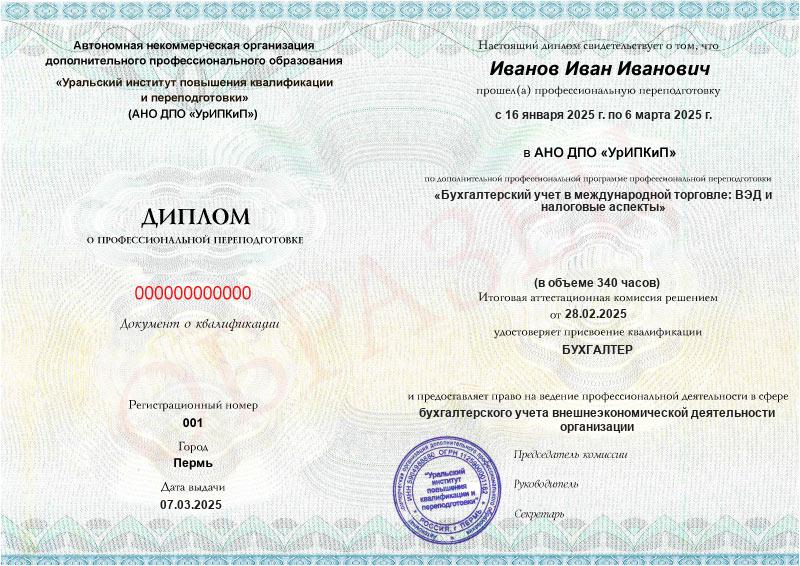 Курс обучения Бухгалтерский учет в международной торговле: ВЭД и налоговые аспекты (340ч)