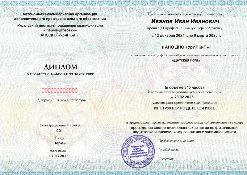 Да, дипломы и удостоверения оформляются в соответствии с действующим законодательством РФ. Документы печатаются на специальных бланках, заверяются печатью АНО ДПО «УрИПКиП».