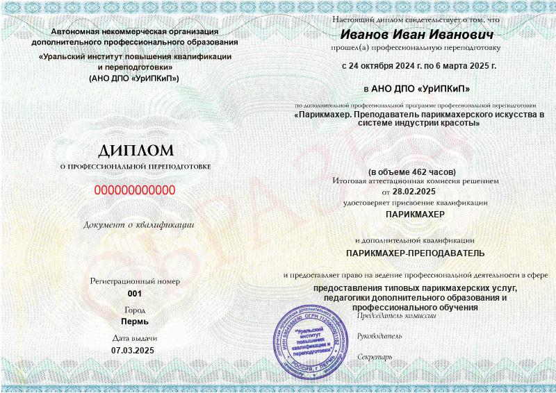 Две квалификации: парикмахер и парикмахер-преподаватель