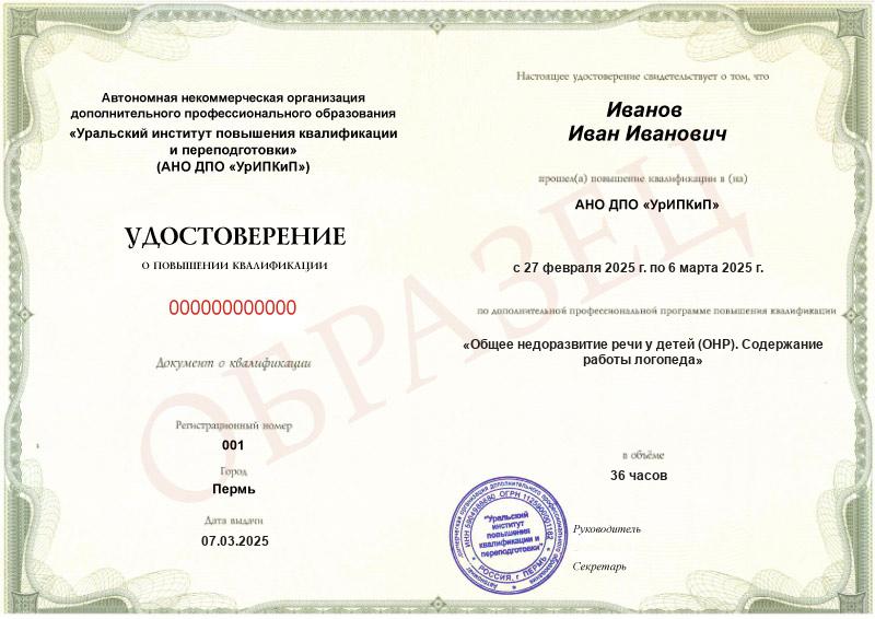 - Повышали квалификацию в АНО ДПО «УрИПКиП» – вам будет выдано удостоверение.